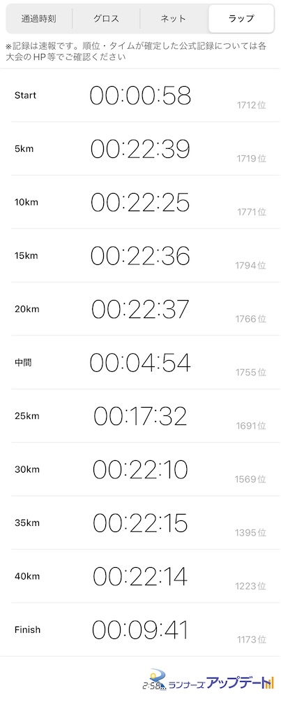 いつもはもうハーフ、と思うのに今回はやっとハーフ